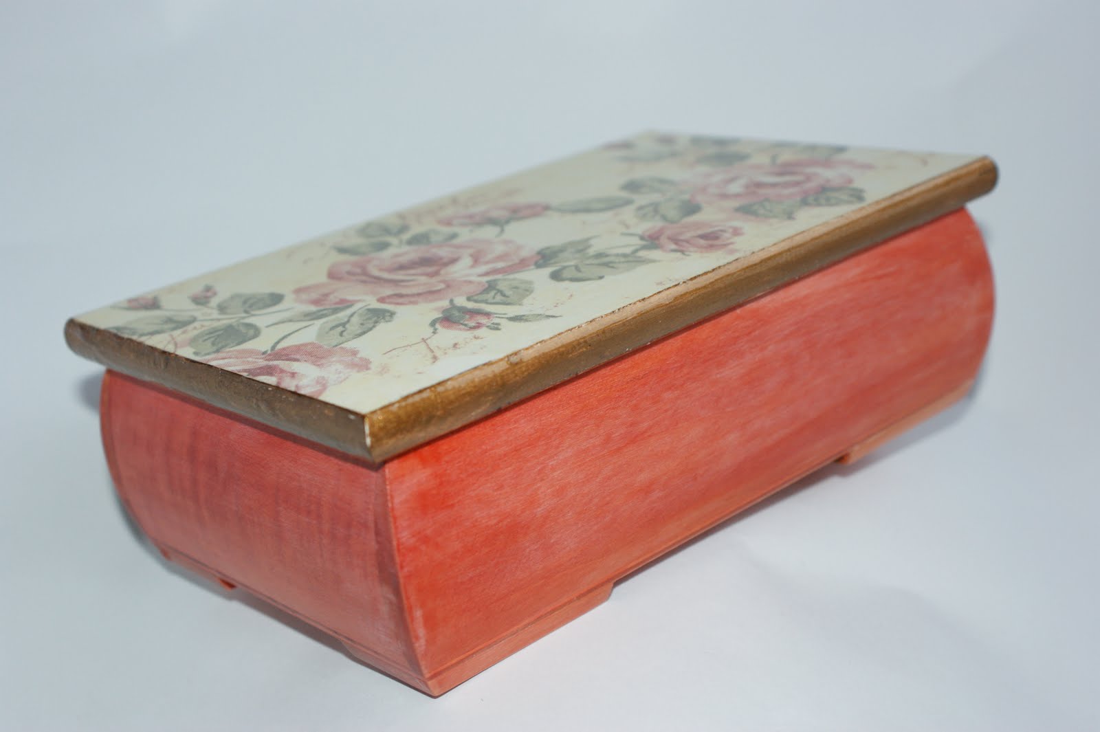 Zapomniałam już o nich. Robiłam je w ekspresowym tempie. W ciągu dwóch dni. Tak się złożyło jakoś pechowo. Dlatego- dół lakierowałam na matowo, bo można mniej warstw, zresztą przy bejcy ładnie to wygląda :) a górę- Boną. Proste decu oklejane po całości, boczki lekko pozłocone- postarzone.