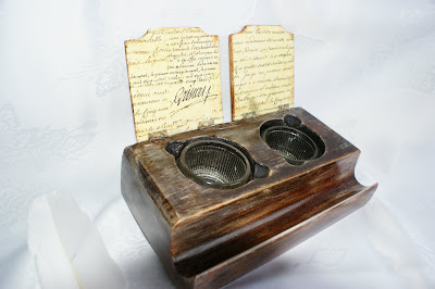 Przedstawiam Wam dziś dwie prace które brały udział w wyzwaniu na forum Otwarte. Temat- "Znalezione na babcinym strychu" Faktycznie kałamarz wygrzebany z rupieci w piwnicy, a zakładka postarzona solami patynującymi wg kursu zamieszczonego przez Anie- Dess na jej blogu. :)