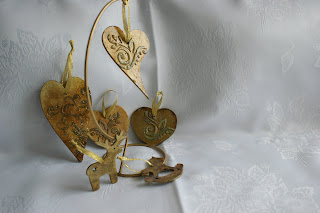 wszyscy mają bombki, mam i ja! :) Przedstawiam Wam pierwszą turę tegorocznych ozdób choinkowych :) Są tam bombki, zawieszki na choinkę, choineczki- stroiki a nawet świąteczne lusterko :) . Zdjęcia nie są niestety idealne- są moją piętą Achillesową :( nie umiem ustawić aparatu tak aby pokazywał to co ja bym chciała Wam pokazać i żeby kolorów nie przekłamywał, ech....