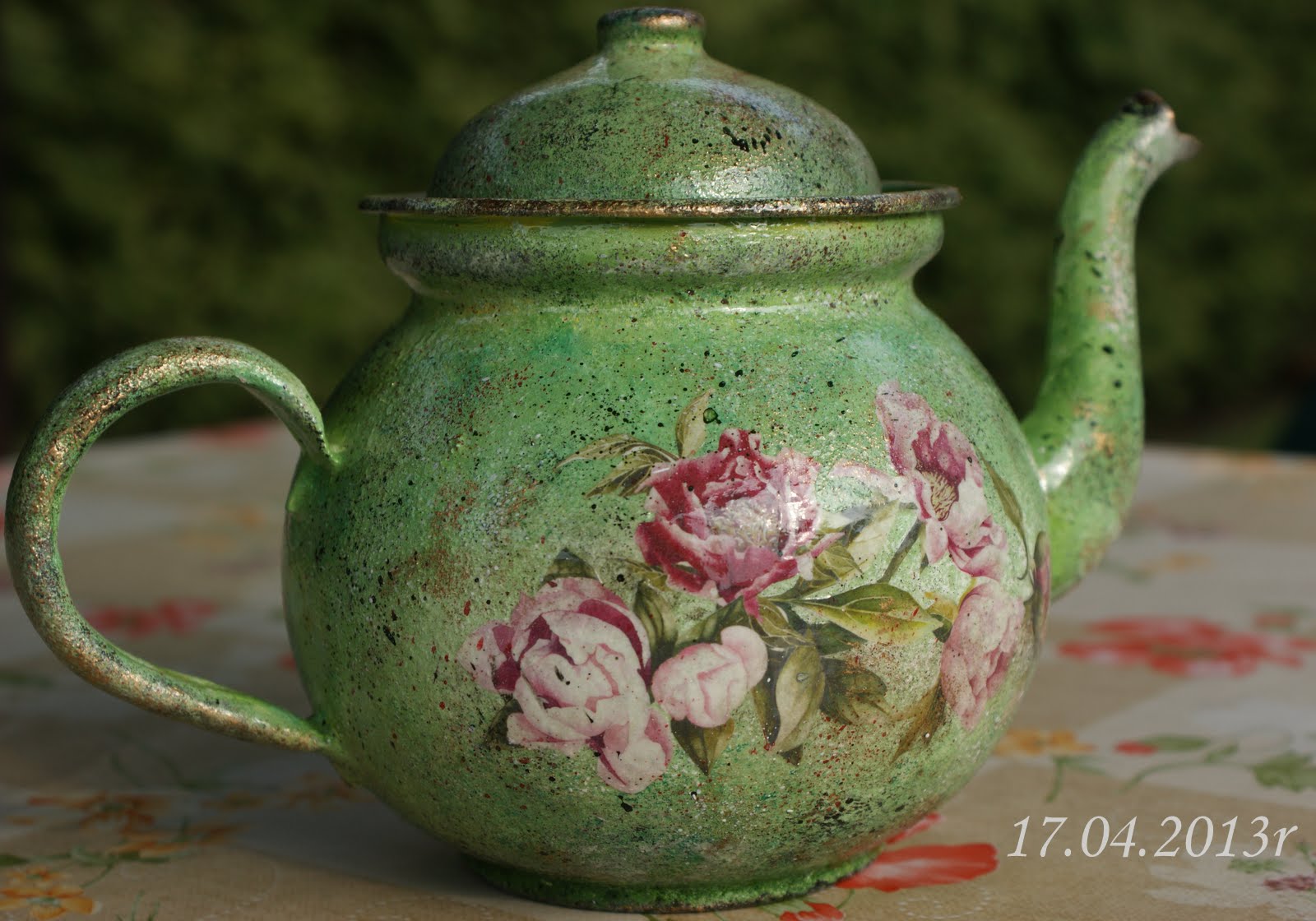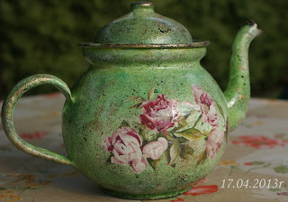 U mnie dziś dwie metamorfozy. Pierwsza to metamorfoza czajniczka :) Służył wcześniej jako konewka do kwiatków. Postanowiłam go troszkę odnowić, a ponieważ nadarzyła się okazja- konkurs to czajniczek dostał drugie życie :) . Teraz bardziej pasuje do mojej kuchni, która w ten długi majowy weekend przeszła małą metamorfozę :) Jak wiosna- to zieleń! :)