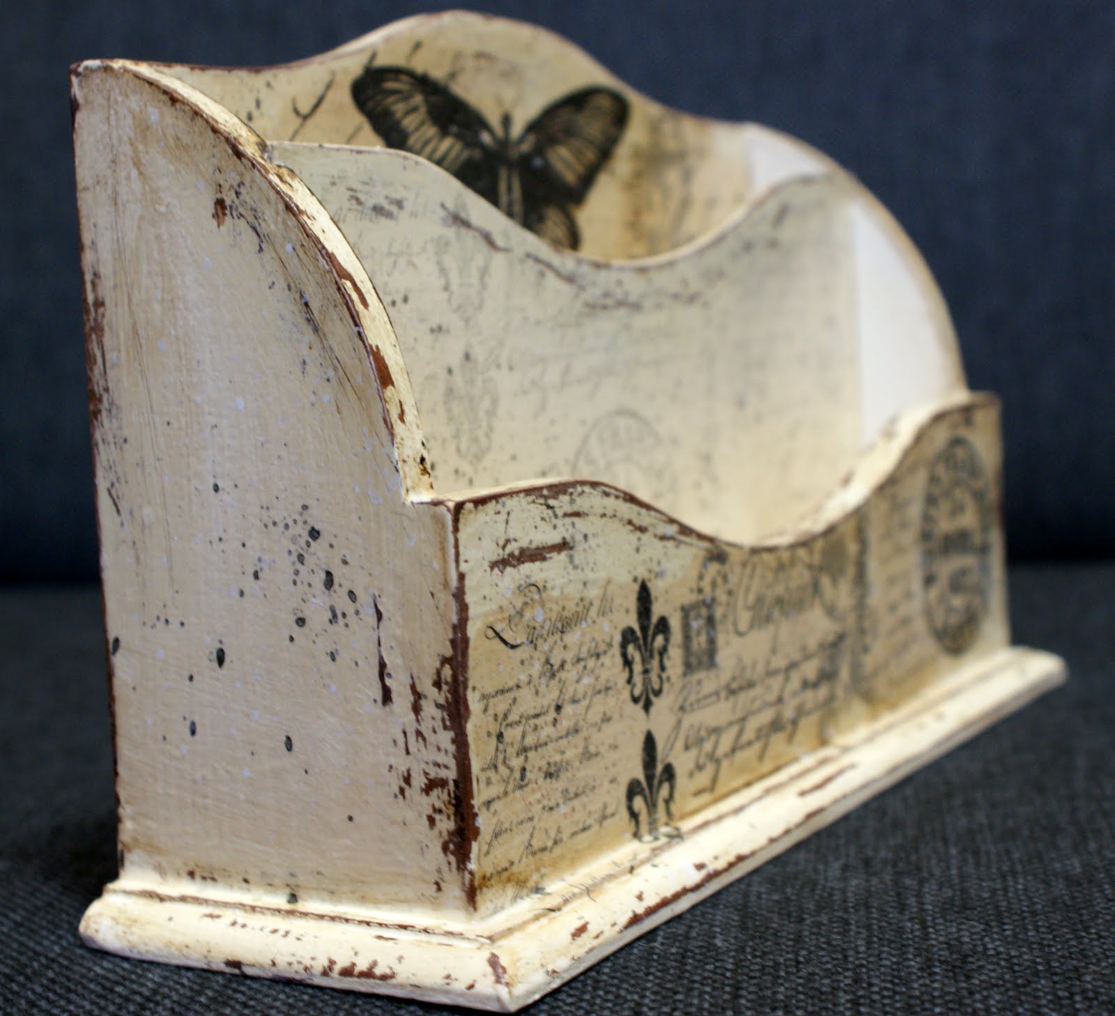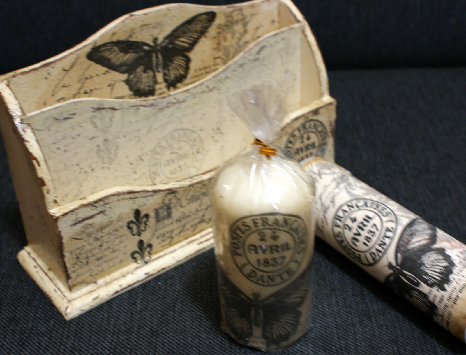 Tak bardzo podoba mi się ta serwetka, że postanowiłam znów jej użyć :) Tym razem padło na listownik. Zainspirowałam się tym listownikiem . Bardzo mi się spodobał, więc odgapiłam trochę :) Ale żeby nie było, że nic inwencji twórczej we mnie nie ma....dorobiłam pudełeczko i świeczkę :)