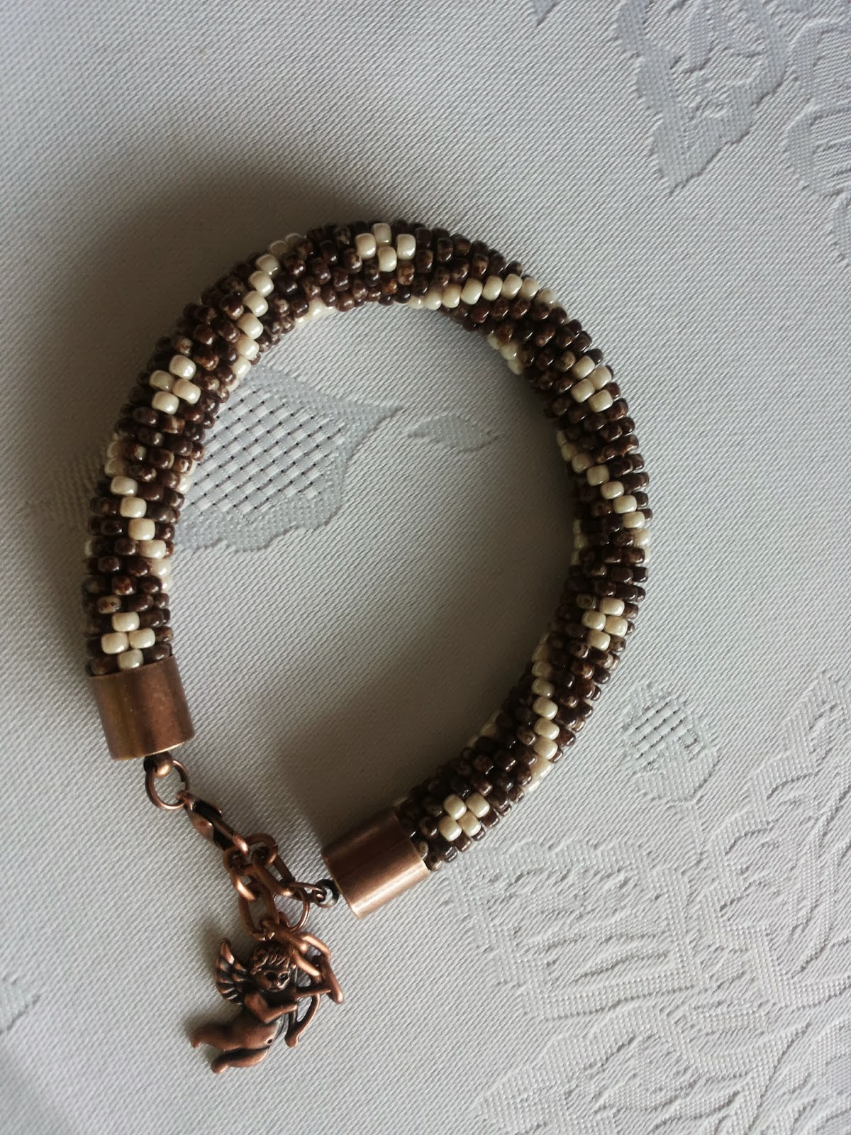 Zakochałam się w koralikach :) Tych małych, malutkich :) Dostałam od świętego Mikołaja ;) dwie przecudnej urody bransoletki i tak mi się spodobały, że postanowiłam sama się nauczyć. Oto pierwsze efekty mojej pracy. Weronika siedziała wraz ze mną i też bransoletkę wydziergała :) Moja ta z sówką :)