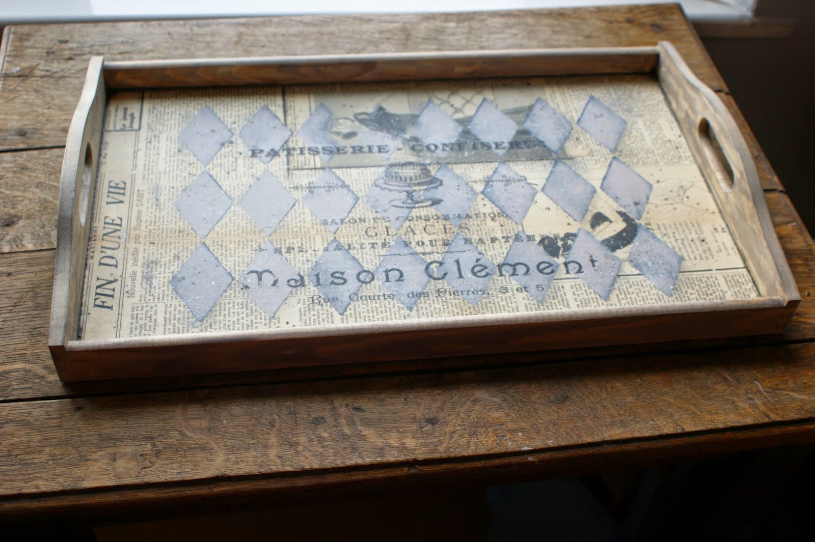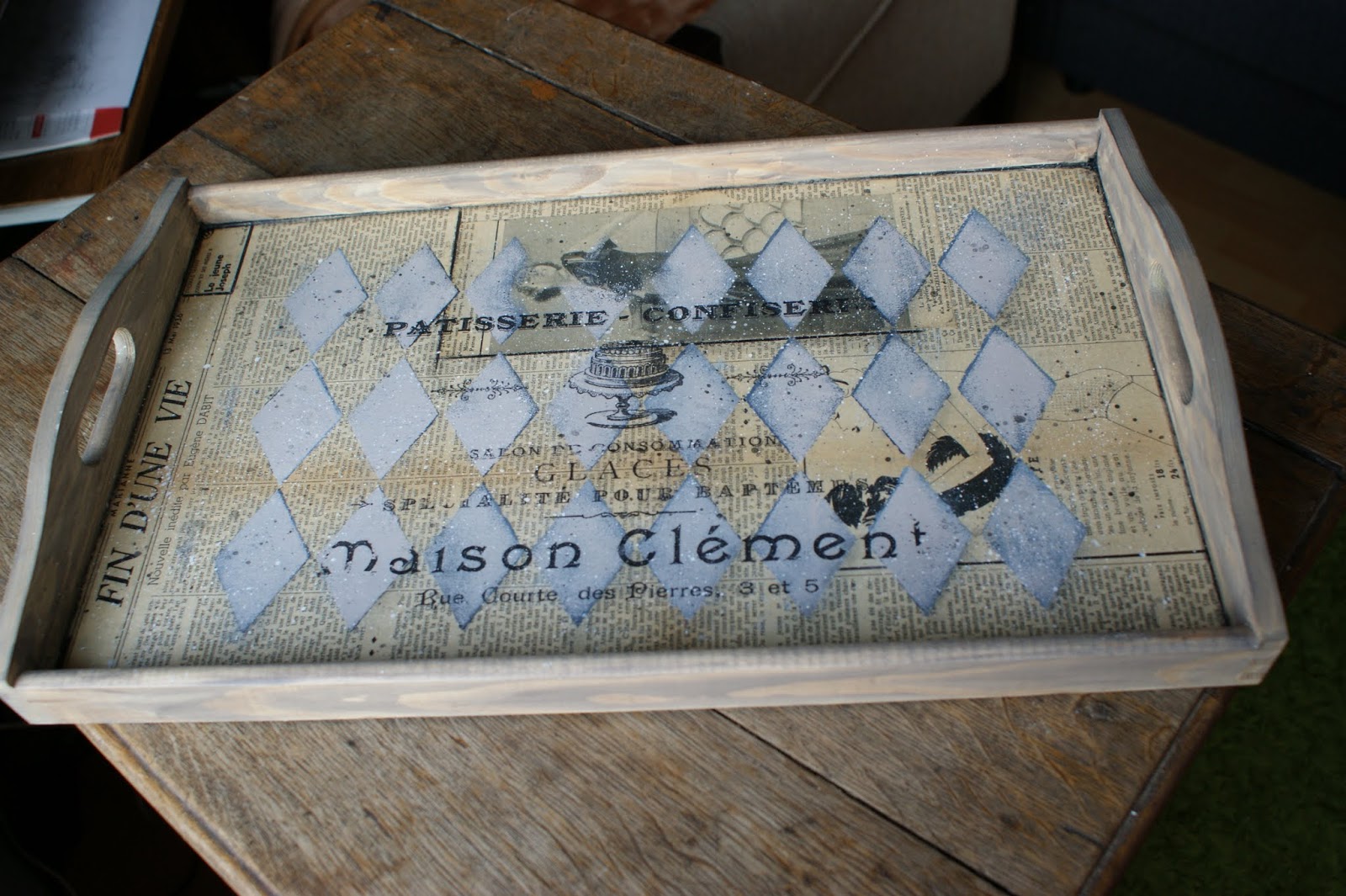 Oto taca. Gazety i romby i transfery- to motyw przewodni. Wylakierowana satynowym matowym lakierem, świetna , aksamitna powierzchnia.