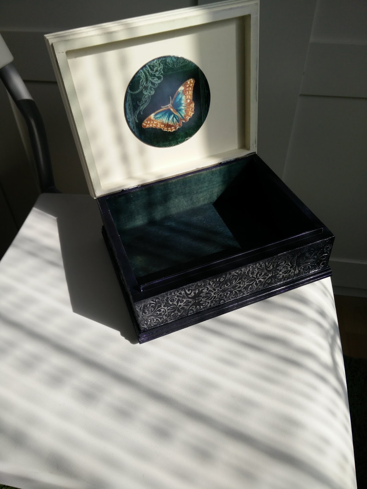 OdpowiedzUsuńPrzepiękna ta szkatułka! Szablon i motylki-wszystko dobrane ze smakiem i z klasą.